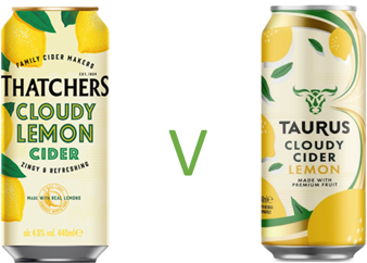 The supermarket had also made TAURUS pear and rosé cider lookalike products based on the Strongbow get-up and a lemon cider lookalike based on the Thatchers get up. Strongbow did not sue, likely because the Supermarket was also selling the Strongbow product alongside the own brand look alike product, and there are no ongoing repeat business prizes for a manufacturer suing their own customer. Thatchers however did not sell to the Supermarket and so felt no reason not to enforce their trade mark rights.